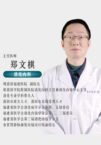 科室现有主任医师1名、主治医师5名、住院医师2名、专科护士9名。团队结构是全市民营医院中配备最强的。科室由莆田福德医院副院长、原莆田学院附属医院消化内科主任兼消化内镜中心主任郑文棋领衔。目前已展开床位30张,可拓展至50张,为患者提供充足的诊疗空间。